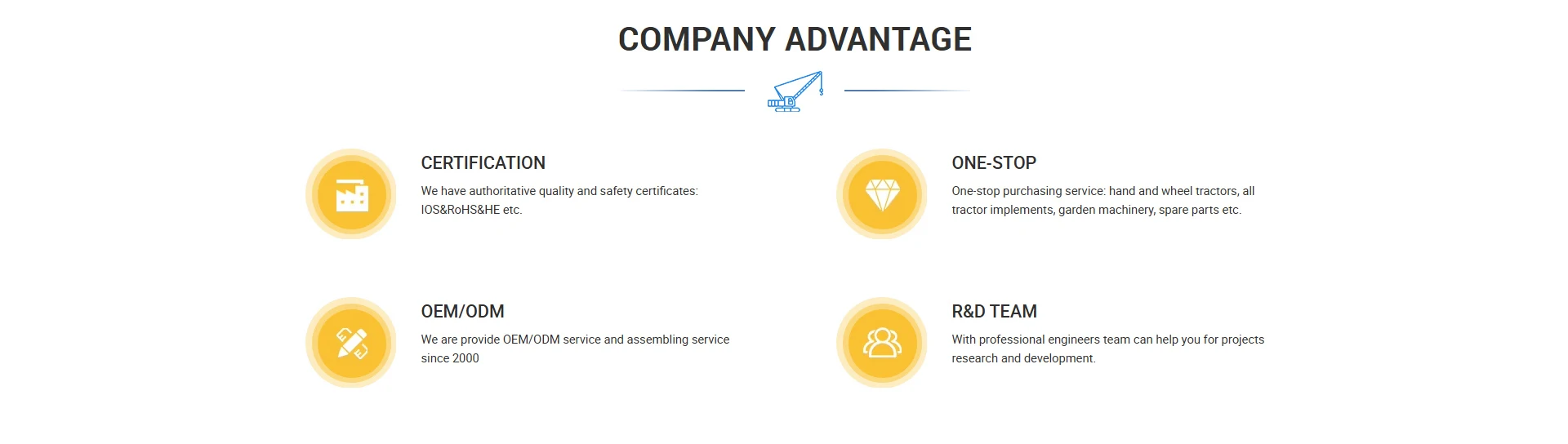 Productos principales:Tractor de ruedas, motocultor, excavadora, implementos agrícolas, astilladora de madera